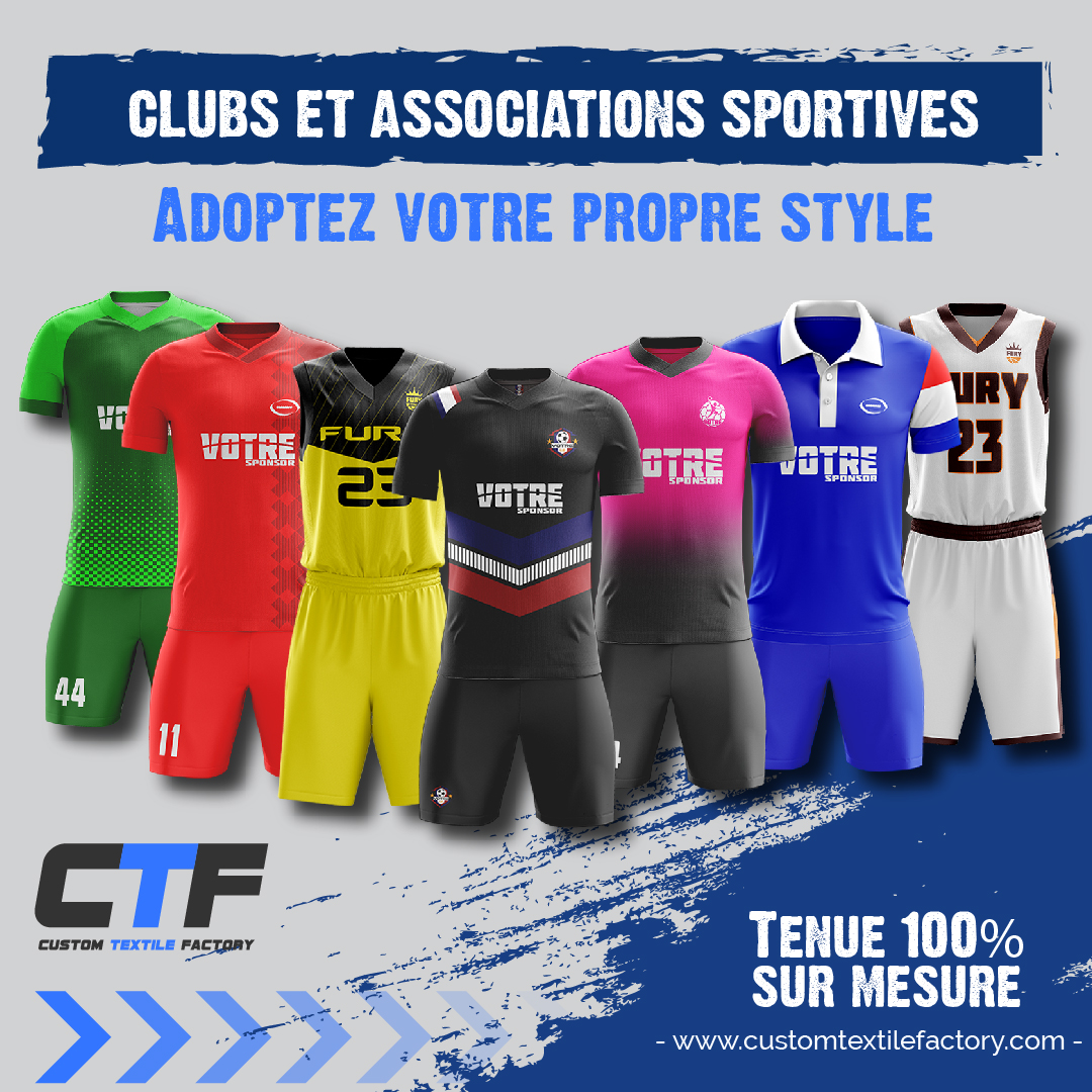Envie de vous démarquer sur le terrain ? Découvrez notre service sublimation dédié aux clubs : Design 100% personnalisableDes maillots et shorts adaptés à votre réalité sportiveDes tenues facile à entretenir et qui durent dans le tempsTous vos marquages inclus (logos, numéros, sponsors, noms …)Commande facilitée avec un conseiller et un designer dédié à votre projetLa garantie qualité Custom Textile Factory Pourquoi faire vos tenues sublimées avec Custom Textile Factory ?Nos designs sont 100% personnalisables selon vos enviesTous vos marquages sont compris dans notre offre (logos, numéros, noms, sponsor, etc …) : vous ne payez aucun surplusNos tissus disposent d’innovations technologiques qui vous apportent confort lors de votre pratique sportiveNous vous simplifions le processus de commande : nos designers s’occupent de tout pour vousVous pouvez varier les couleurs et designs et ce même pour les petites commandesUn designer spécialisé dans le sportswear est dédié à votre commande Nom et prénom email Numéro de téléphone Club Rôle au sein du club Sport Football Basketball Volleyball Handball Esport Cyclisme Running Autre Ville de livraison souhaitée Votre demande Veuillez joindre vos logos et visuels si vous en avez Send